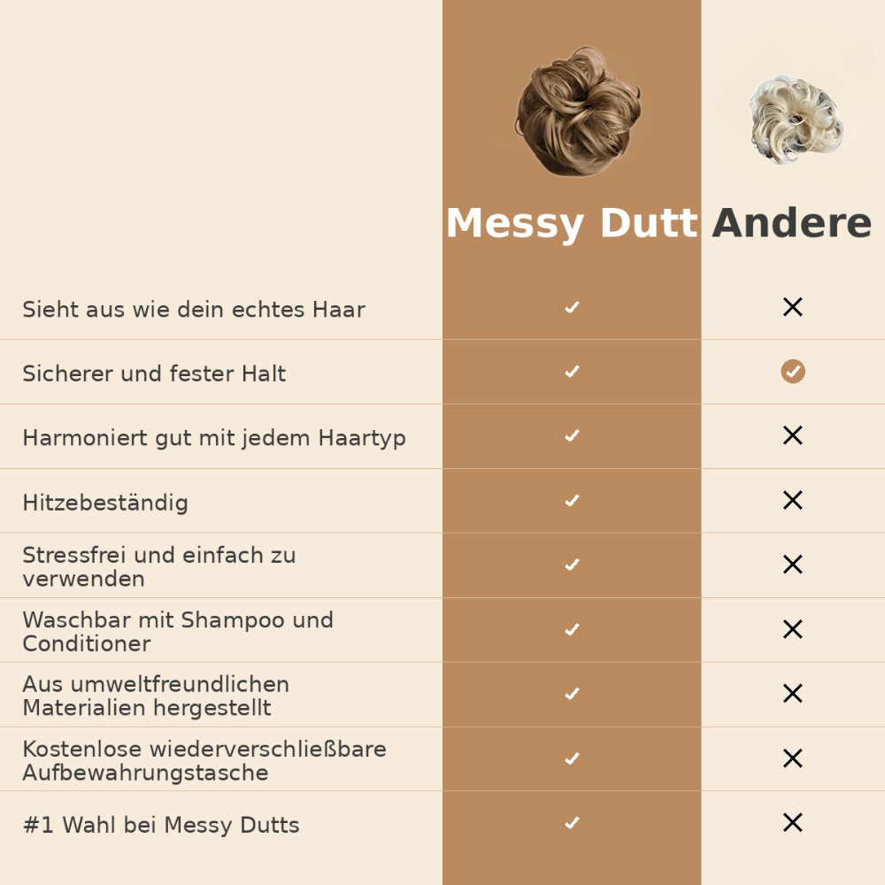 Gehe selbstbewusst durchs Leben mit dem Wissen, dass dein Messy Dutt fest sitzt – kein Verrutschen, kein Salonbesuch, kein Stress.