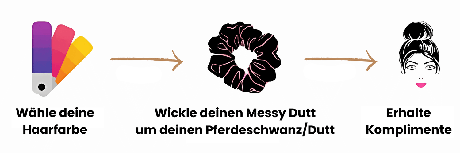 Genau! Binde einfach deinen eigenen Pferdeschwanz oder Dutt und wickle den Messy Dutt darum.